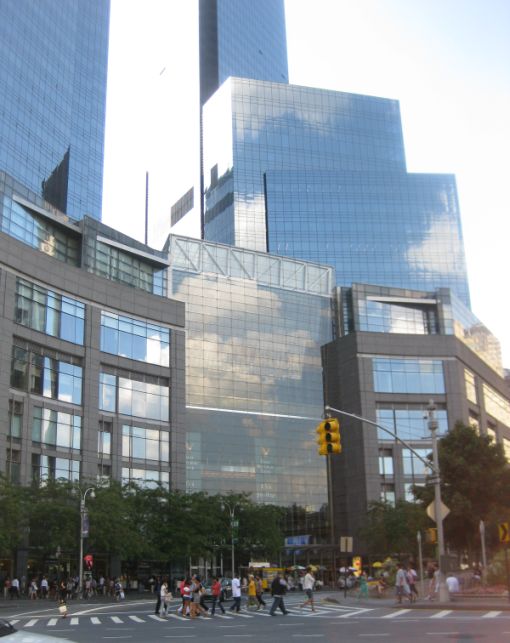 The Time Warner Center is a mixed-use skyscraper, consisting of two 750 ft towers bridged by a multi-story atrium containing upscale retail shops. The property had the highest-listed market value in New York City, $1.1 billion, in 2006. Originally constructed as the AOL Time Warner Center is divided between offices of Time Warner Inc. and an R&D Center for VMware, residential condominiums, and the Mandarin Oriental New York hotel.