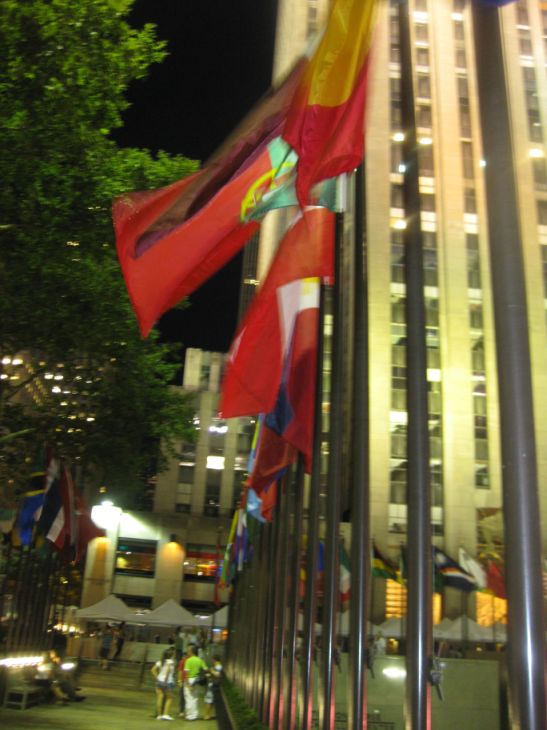 Rockefeller Center is a complex of 19 commercial buildings covering 22 acres between 48th and 51st streets. Built by the Rockefeller family, it is located in the center of Midtown Manhattan. It was declared a National Historic Landmark in 1987. All buildings share a common design style, Art Deco, and are connected to each other via an underground concourse, the Catacombs. The complex is nevertheless well integrated in the city of New York, especially along Fifth Avenue. In 1959 and the early seventies, Rockefeller Center was extended with 5 additional buildings along sixth Avenue.