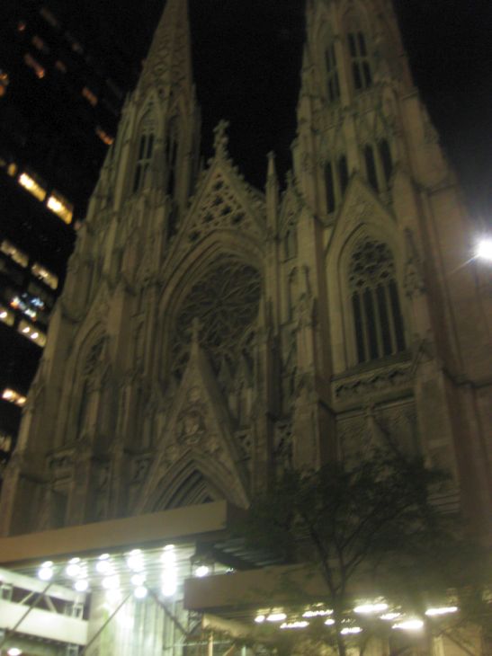 The Cathedral of St. Patrick (commonly called St. Patrick's Cathedral) is a decorated Neo-Gothic-style Roman Catholic cathedral church in the United States. Located on the east side of Fifth Avenue between 50th and 51st Streets in midtown Manhattan, directly across the street from Rockefeller Center and specifically facing the Atlas statue.