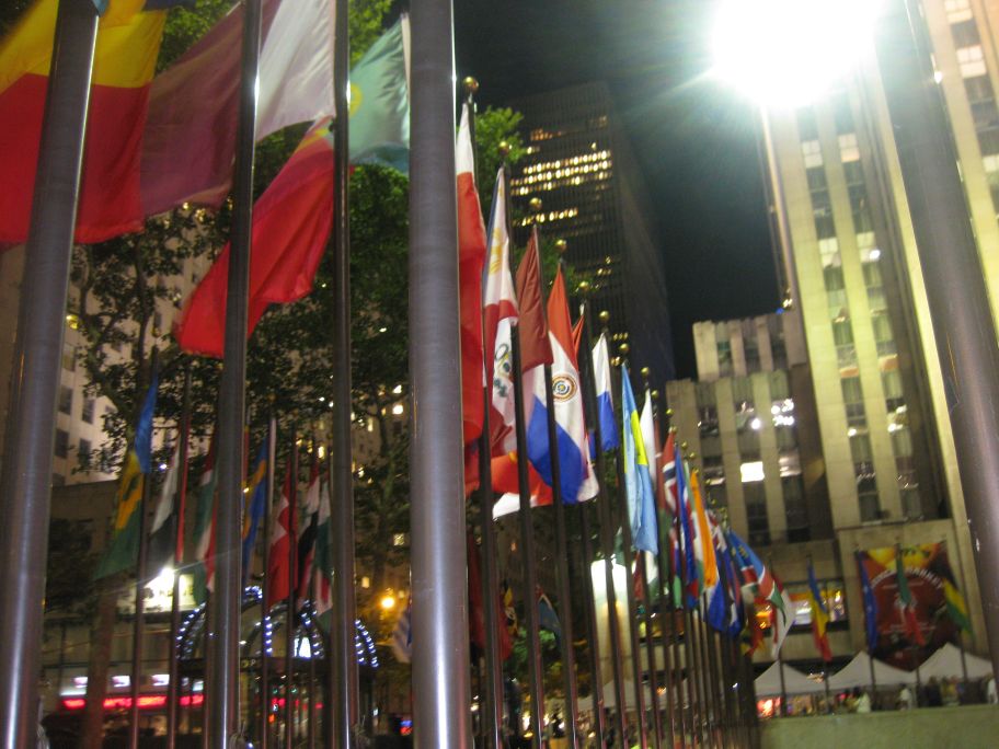 The plaza has about 200 flagpoles with various. During U.S. holidays, every flagpole carries the Flag of the United States.