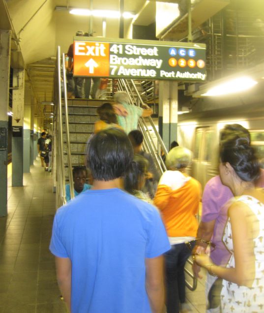 Taking the subway to Time square and Broadway.