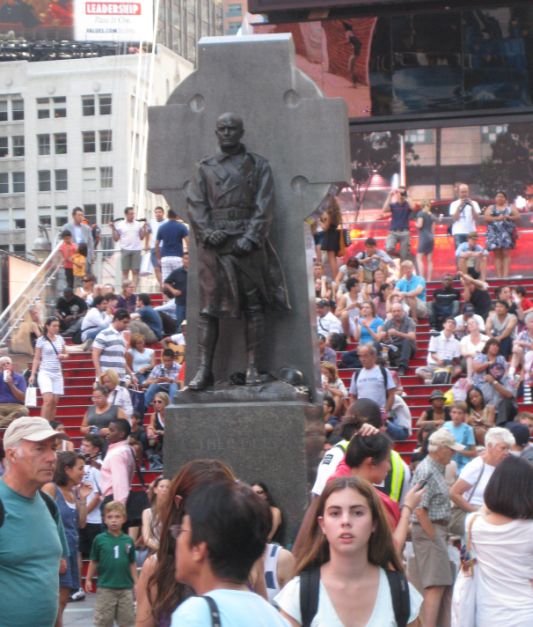 Monument of Father Francis Patrick Duffy (1871–1932) win time Square. Duffy was an American soldier, Roman Catholic priest and chaplain. As the chaplain for the "Fighting 69th", he became the most highly decorated cleric in the history of the U.S. Army. Duffy Square, the northern half of Times Square, is named after him. |