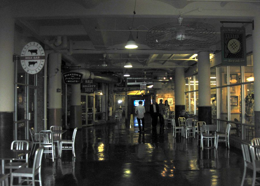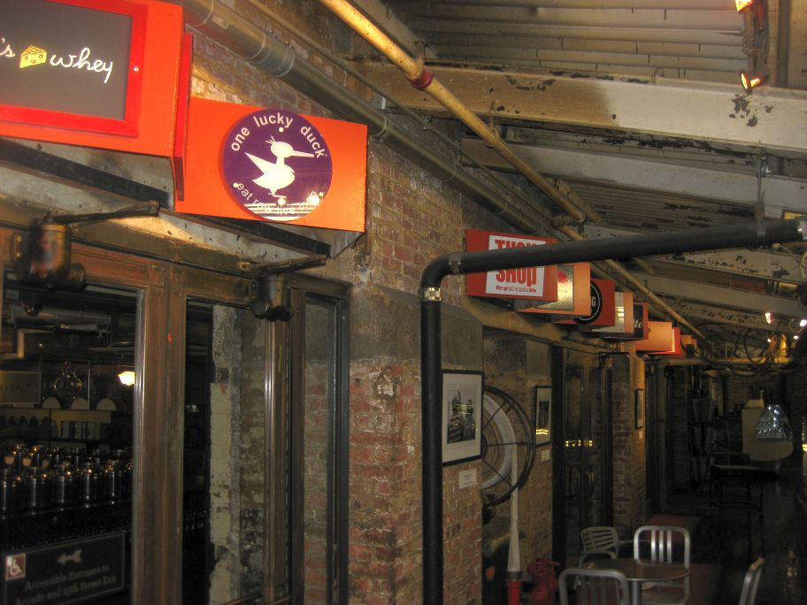 Chelsea Market is an enclosed urban food court, shopping mall, office building and television production facility located in the Chelsea neighborhood, just around the corner from Morimoto's. Built in the former National Biscuit Company factory complex where the Oreo cookie was invented and produced. In addition to the retail concourse in the structure east of 10th Avenue, it also provides standard office space for tenants, including media and broadcasting companies such as Oxygen Network, Food Network, and many more. Recently, Google has moved into some of the second and fourth floors.