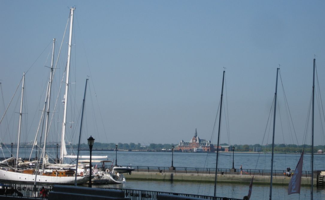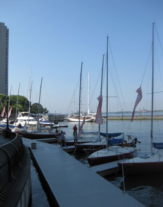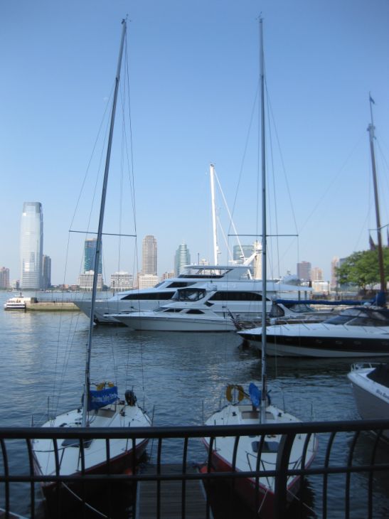 As you step of the atrium is the Yacht Harbor on the Hudson River.