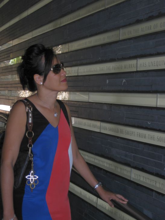 The memorial also incorporates an authentic rebuilt Irish cottage of the 19th century.