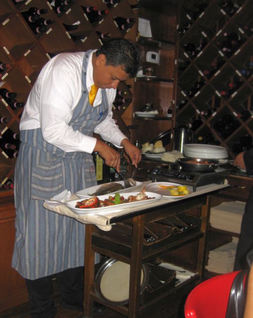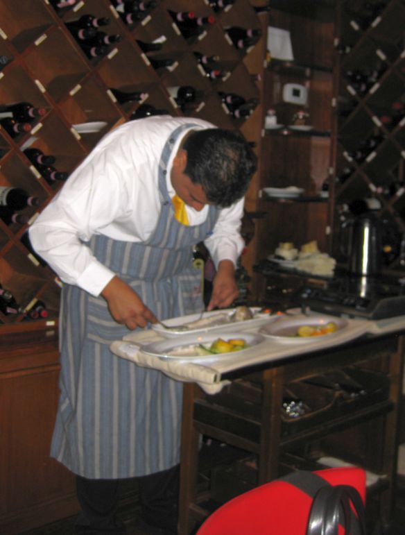 Waiter de-boning a fish. It is pretty interesting to see them work.