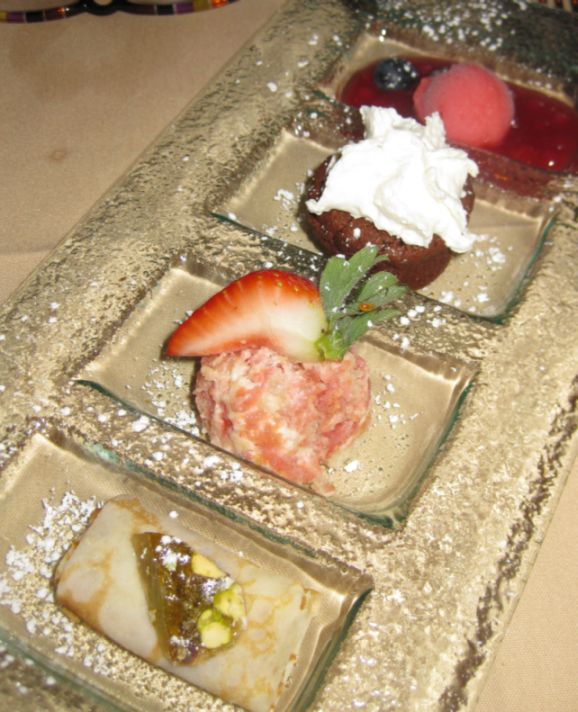 Dessert was a sampler quartet! From left to right: the quartet consisted of a raspberry tapioca with sorbet, chocolate cake with Nutella, citrus tiramisu topped with strawberry and Palacinche di Stagione warm crepes of Trieste, filled with rosehip jam, topped with pistachio and somekind of nuts concuction. My two favorites were the crepe and the Tiramisu. The Tiramisu was light, fresh, and simply amazing, it is a different take on an Italian classic. The crepe was warm and also excellent. The sorbet served as a cleanse palate but I enjoyed the tapioca pearl that reminds me of Asian dessert. By the time I got to the Chocolate cake I was too full so I could not finish it.