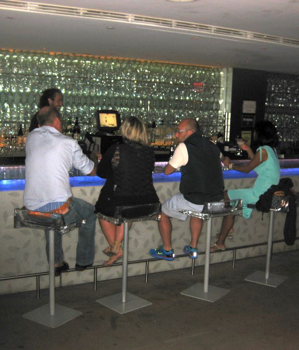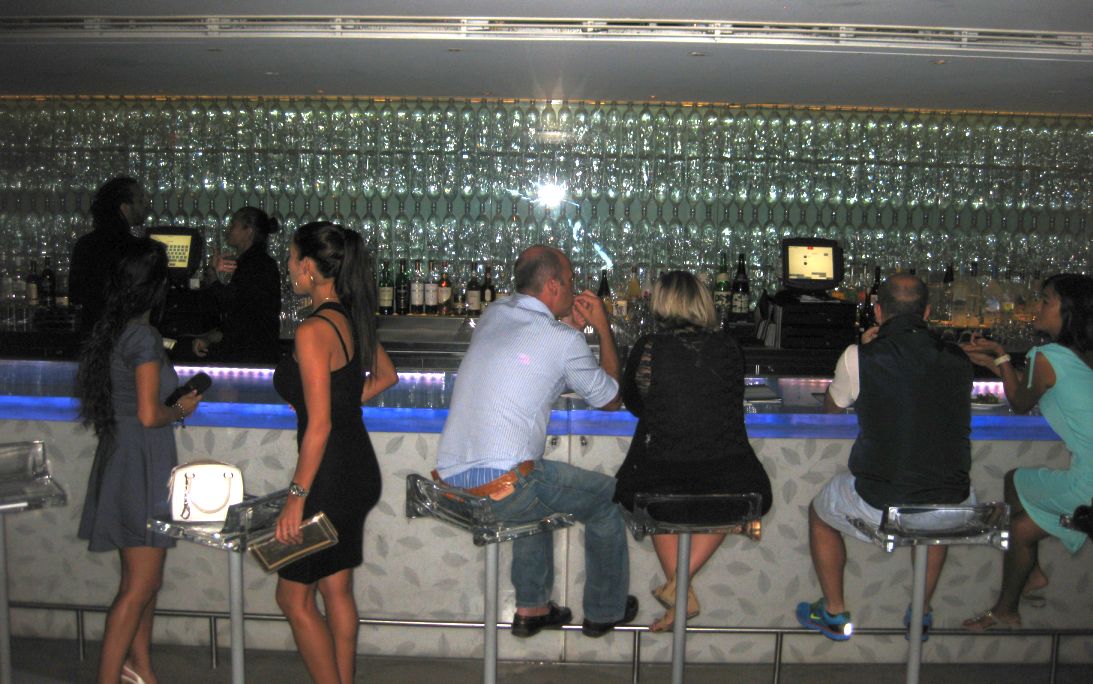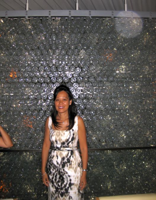 Our waiter insisted that we take a picture behind this wall because he told us that everybody looks younger due to the reflection of the bottles and the effects of the lighting inside the wall.