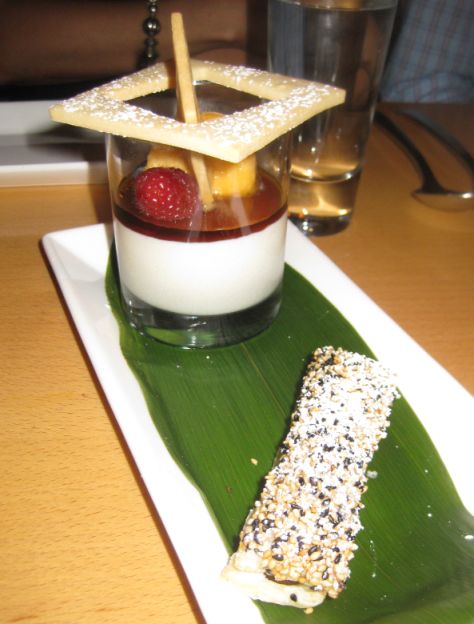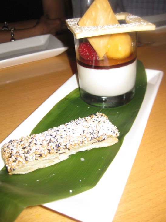 The tofu cheesecake coffee infused maple syrup was served in a small glass, topped with mango sorbet, a raspberry and a butter cookie. The tofu cheesecake was simply delicious, but pairing it with the mango sorbet just enhance the dessert! As for the red bean pastry, it consisted of red bean paste sandwiched between two flakey pieces of puff pastry was fantastic. What a great way to end the meal.