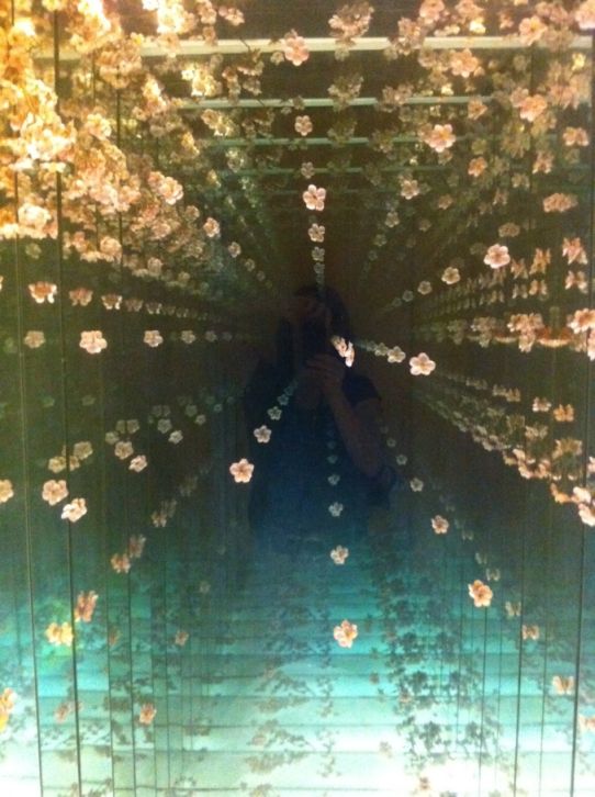 Bathroom stall at Morimoto have a modern aesthetic with a touch of nature in each of the stalls. Very interesting wall, made of layers of lit glass with cherry blossom flowers and a few tiny branches in between, giving you the illusion of an infinite reflection.