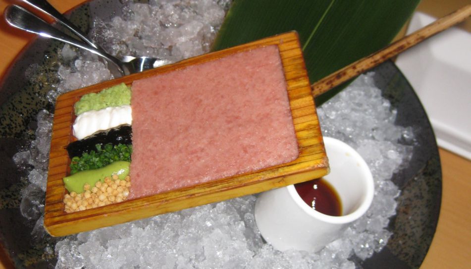 True Toro comes only from the underbelly of the Bluefin Tuna. Toro is divided into grades based on the marbling of the meat (much like the grading of beef). So it goes without saying that at Morimoto his delicious Toro tartare is made from the best Toro that money can buy.