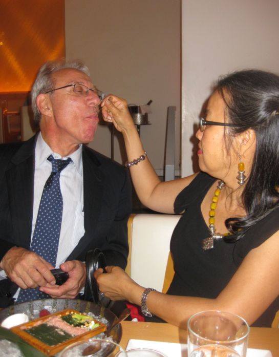 Auntie Kim spoon fed Uncle Larry with the Toro tartare together with the five garnishes. |
