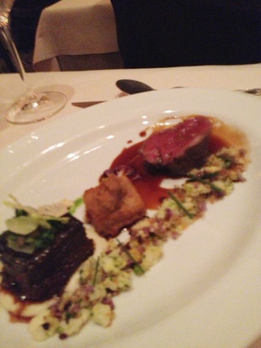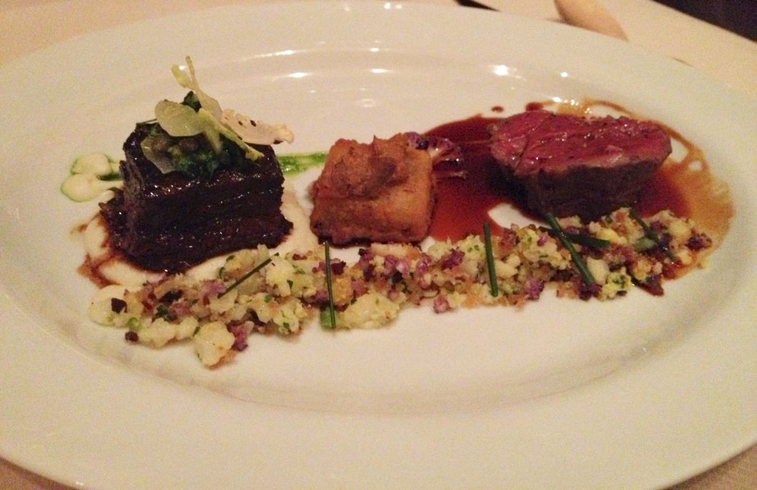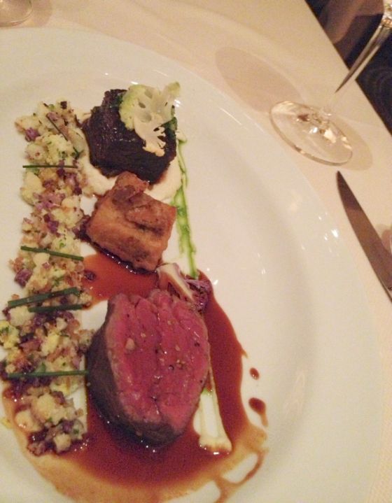 savoring the “duo of beef” pairing braised Black Angus short ribs and wild