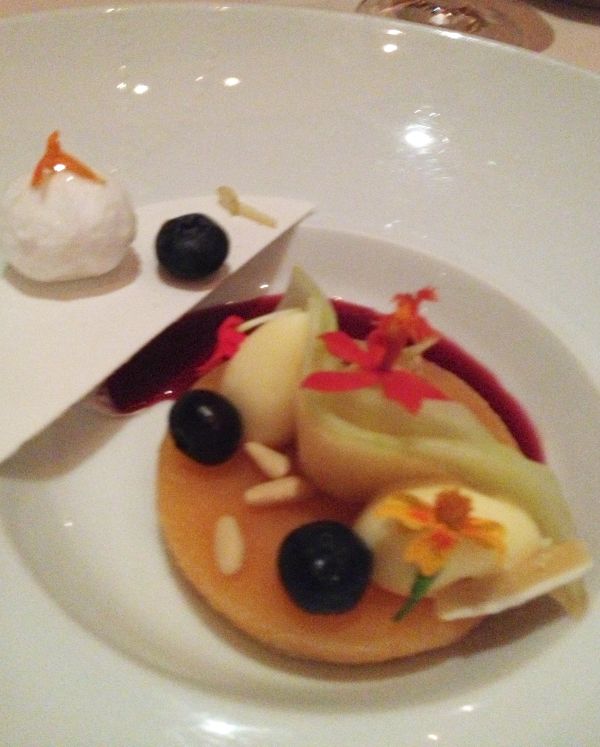 Hoa ordered the MELON PROVENÇAL, Orange Blossom Moelleux, Lemon Curd Calisson,