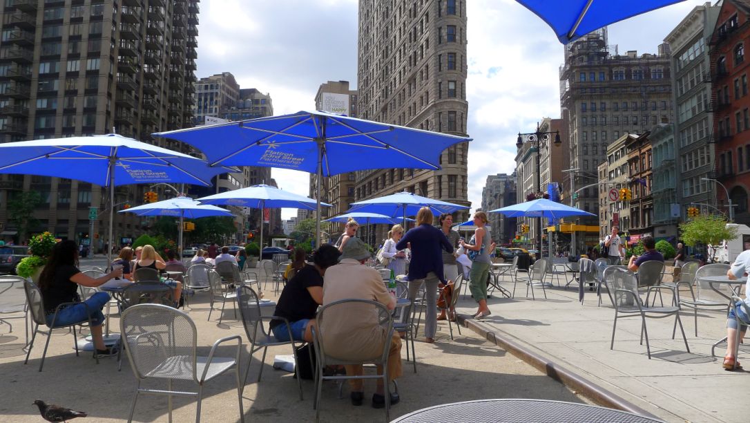 Eataly is located in the Flatiron district in New York City. This area is called Flatiron because it is named after the Flatiron Building at 23rd Street, Broadway and Fifth Avenue (building in the center)