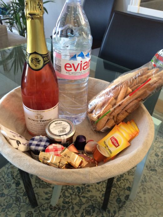 Welcome basket came with a bottle of rosé Champagne and a bunch of goodies. |