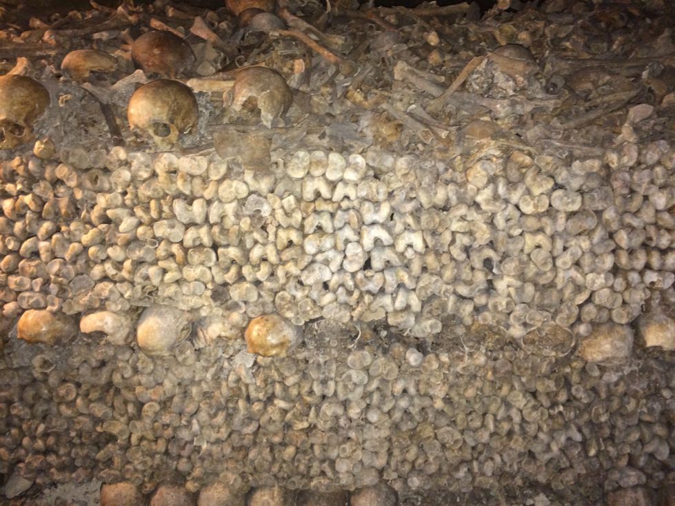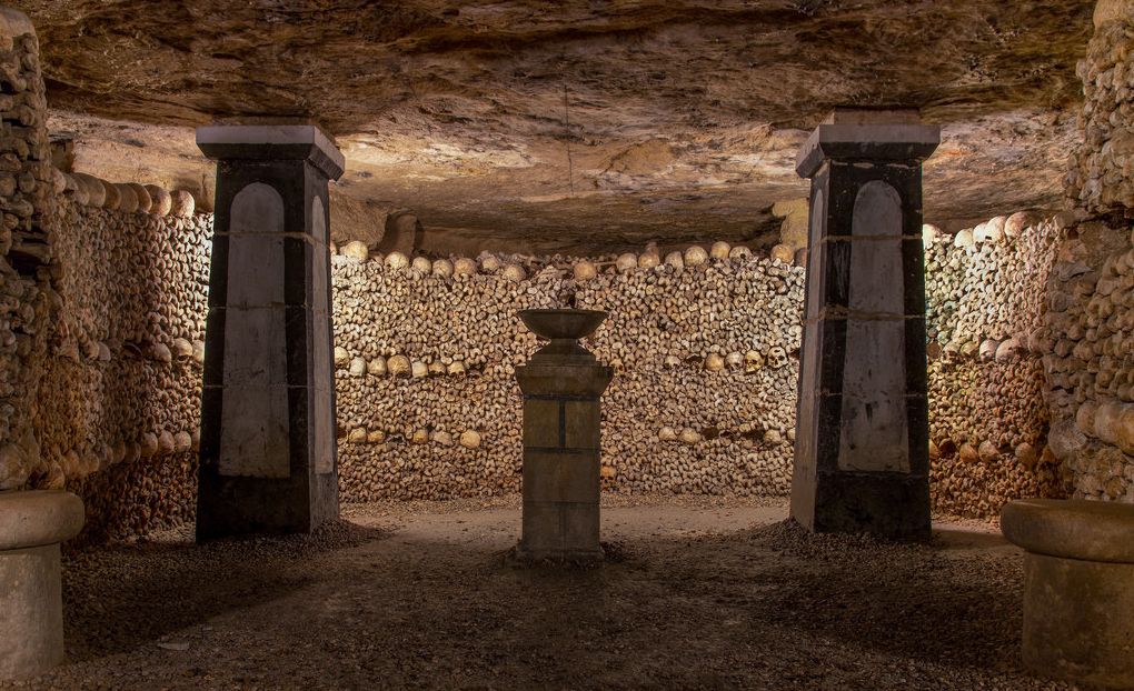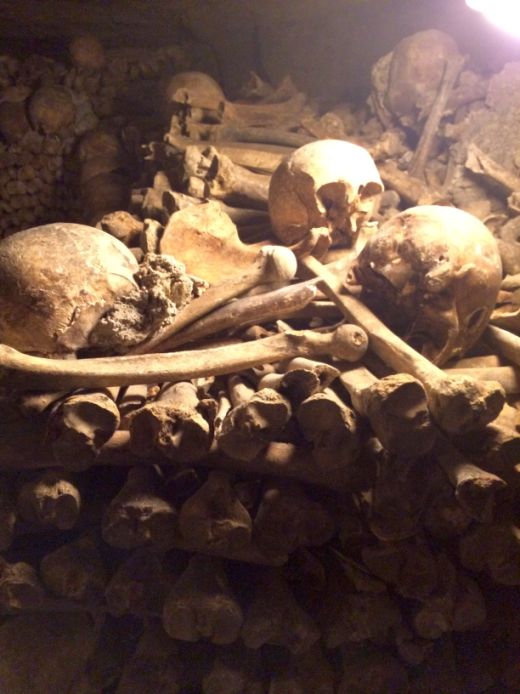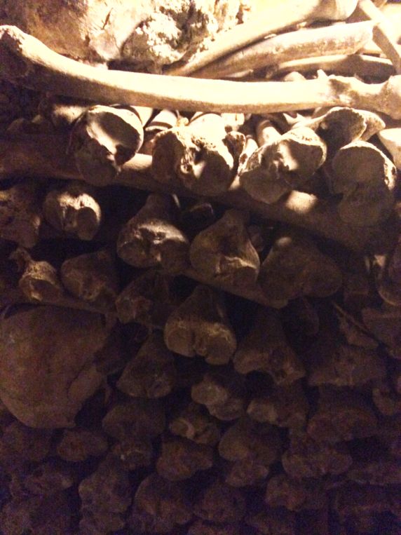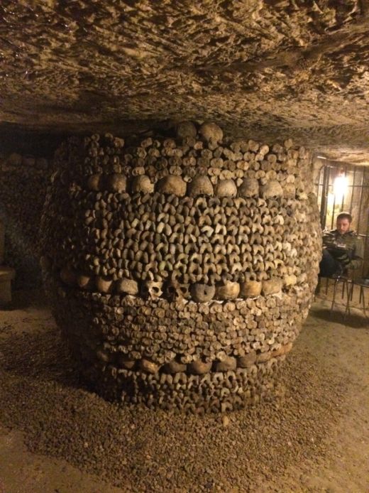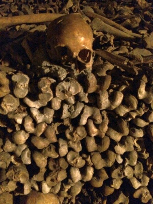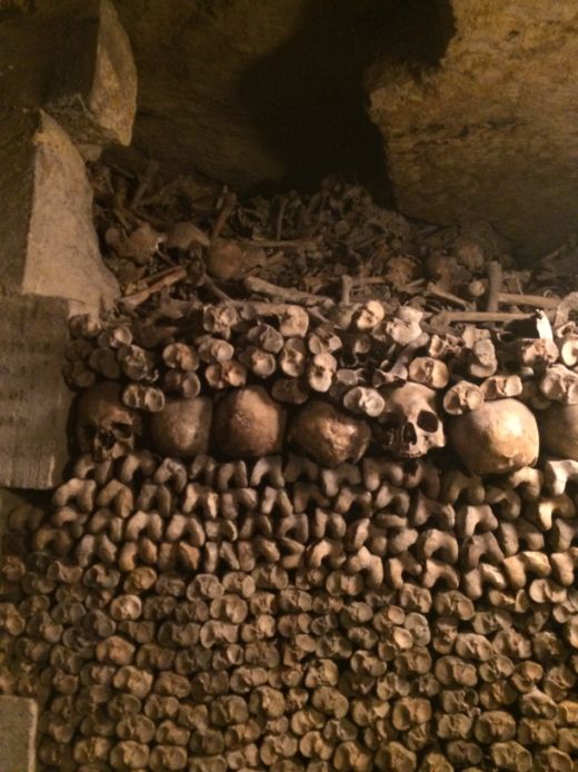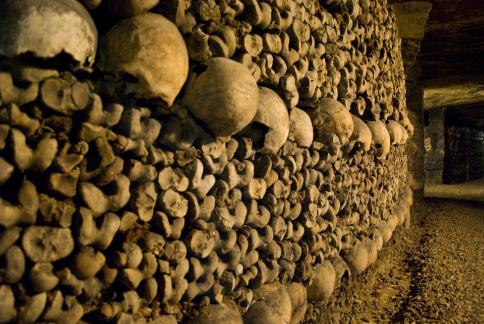 Paris is known to be the city of light and is probably the most romantic city in the world but not every inch of Paris is luminous. Underneath the heart of the City, 60 feet below street level you will find the Catacombs (Les Catacombes), a 200-mile network of old caves, tunnels and quarries, and much of it is filled with skulls and bones of the dead. Prior to the creation of the Catacombs, in the mid-18th century, Parisians buried their dead in cemeteries, but as the city continued to grow, burial grounds ran out of space, and tainted groundwater affected nearby residents. In 1786, heath conscious Parisians looking to relieve congestion and improve the City's sanitary conditions emptied the church cemeteries and moved the bones of 6 millions people to the Catacombs which was at the time a former limestone quarries. For decades, priests led ceremonial processions of black veiled, bone laden carts into the quarries, where the bone were stacked in piles five feet high and as much as 80 feet deep.