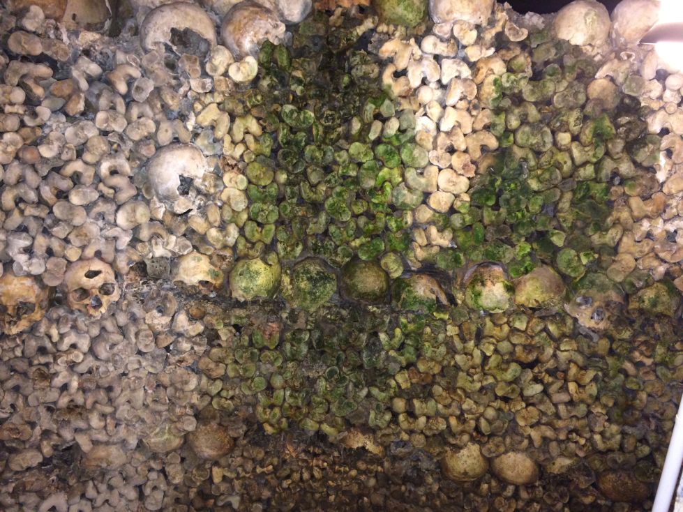 Some part of the Catacomb are damped and you can see water dripping from the ceiling. Here you can see it formed some green moss on the bones.