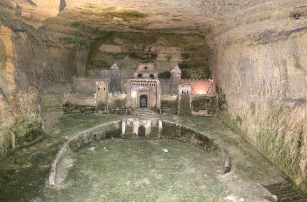 Perhaps the most unique and popular curiosity is the sculpture created in 1782 by Beauséjour Décure, a discharged soldier who had been enrolled in the army of Richelieu during the re-conquest of Minorque. Although only a few details of his life are known, once discharged he worked in the quarries. During breaks, for five years Décure chiseled out of limestone a replica of the Port-Mahon, the largest town on the island of Minorca, one of the Balearic Island, where he is believed to have been prisoner by the English. Wanting to make his creation more accessible, he was killed by a cave-in while opening an access stairway to his model.