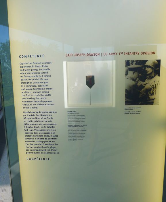 Competence: Captain Joe Dawson's combat experience in North Africa and Sicily proved invaluable when his company landed on fiercely contested Omaha Beach. He guide his men through an unmarked gap in a minefield, assaulted and seized formidable enemy positions, and was among the first to climb the bluffs overlooking the beach. competent leadership proved critical to ultimate success of the Landing.