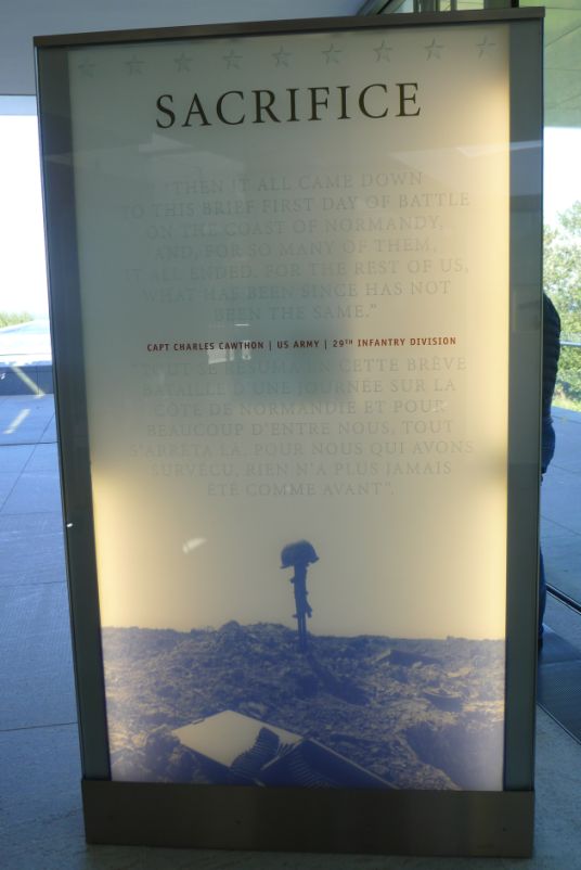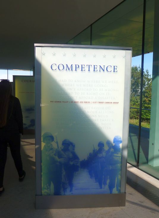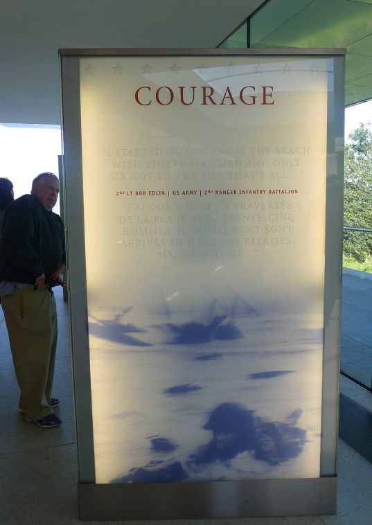 The goal of the center is to better tell the courageous and inspiring story of those buried at Normandy American Cemetery. One-third of the building's 30,000 square feet is dedicated exhibit space. Using personal stories of participants and a mix of narrative text, photos, films, interactive displays and artifacts, exhibits portray the competence, courage and sacrifice of Allied forces.