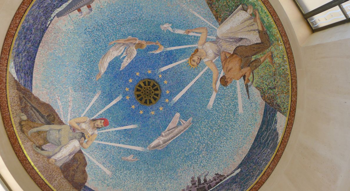 A ceiling mosaic depicts America blessing her sons as they depart to fight for freedom.