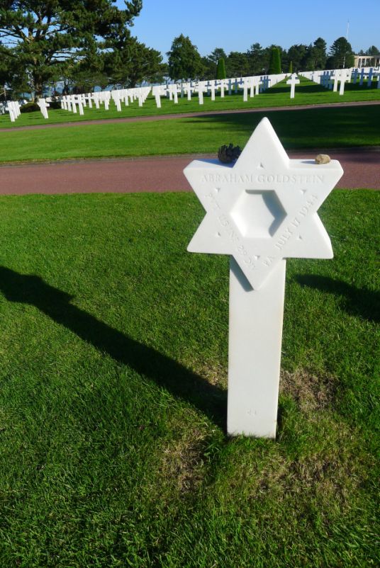 A Jewish grave surrounded by crosses. Only 149 graves have Jewish stars because most Jewish soldiers were advised against writing that they were Jewish on their dog tags going into anti-Semitic Europe during WWII. This means that many Jews are probably buried under crosses.