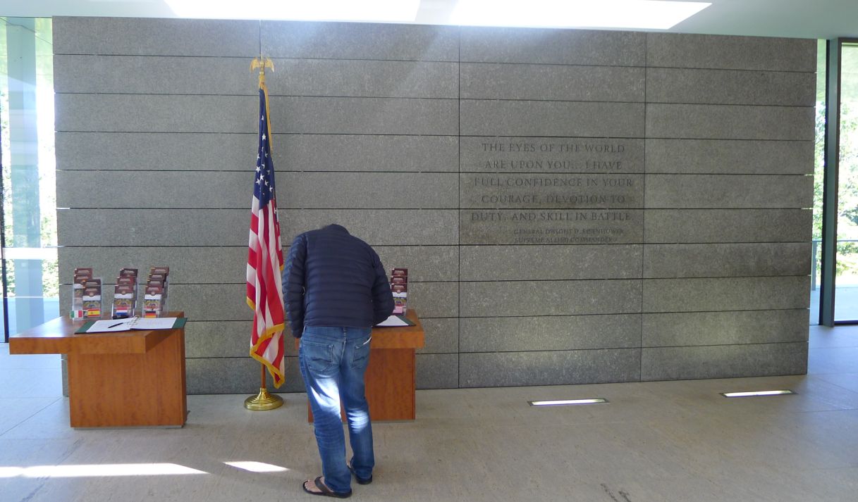 Hoa signing in the visitor's book. The American Cemetery in Normandy is the most visited cemetery, receiving approximately one million visitors each year.