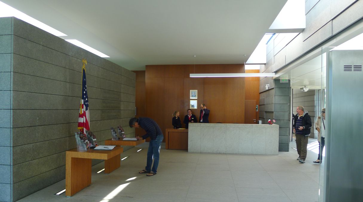 The Entrance of the Visitor center. The center is located in a wooded area of the cemetery approximately 100 meters east of the Garden of the Missing.