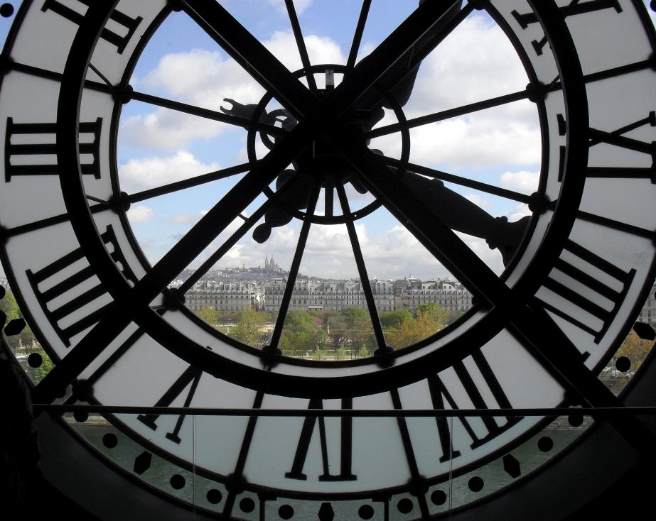 Actually, there are two clocks built into the north side of the D’Orsay Museum (which you can see it the 1st picture on this page). This is the view of the clock from the inside facing the Seine and in the distance you can see Montmartre.