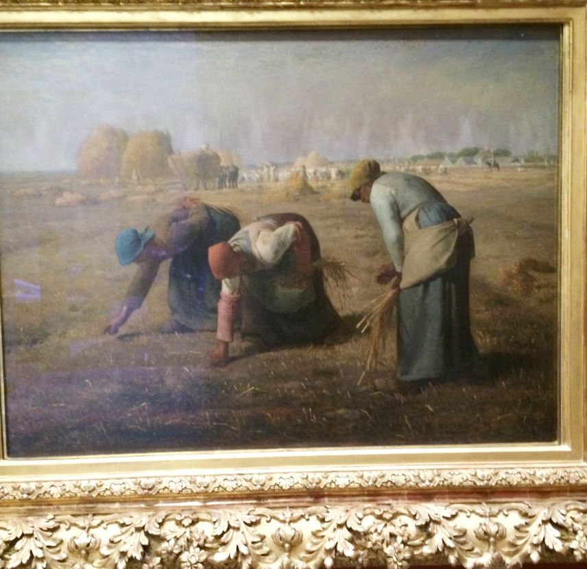 It depicts three peasant women gleaning a field of stray grains of wheat after the harvest. The painting is famous for featuring in a sympathetic way what were then the lowest ranks of rural society; this was received poorly by the French upper classes.