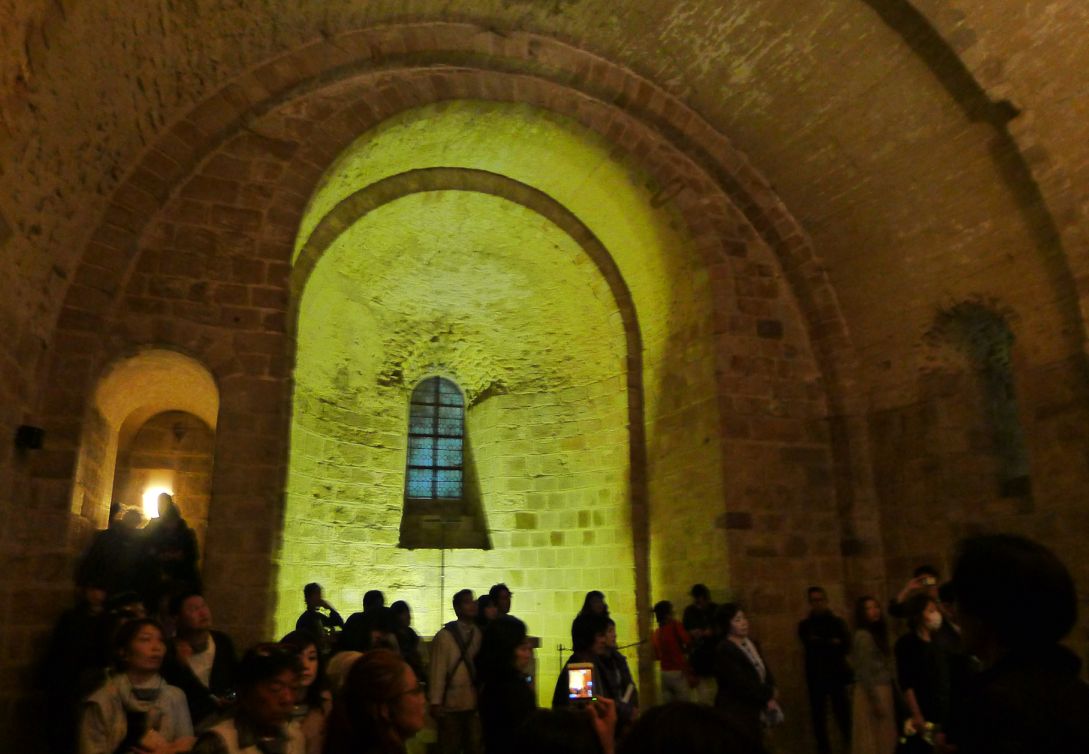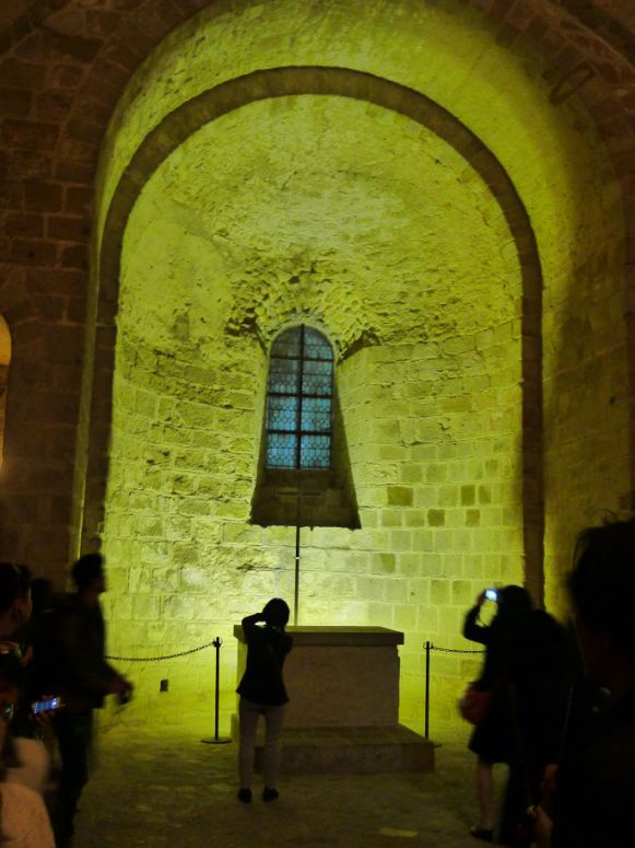 The Crypt consist of a single straight nave some 29 feet wide, spanned by a barrel vault, reinforced by a powerful transverse arch, and a small vaulted apse that is in face a perfect quarter sphere. Light creeps shyly into this crypt through small Roman arched windows pierced into the thickness of the walls