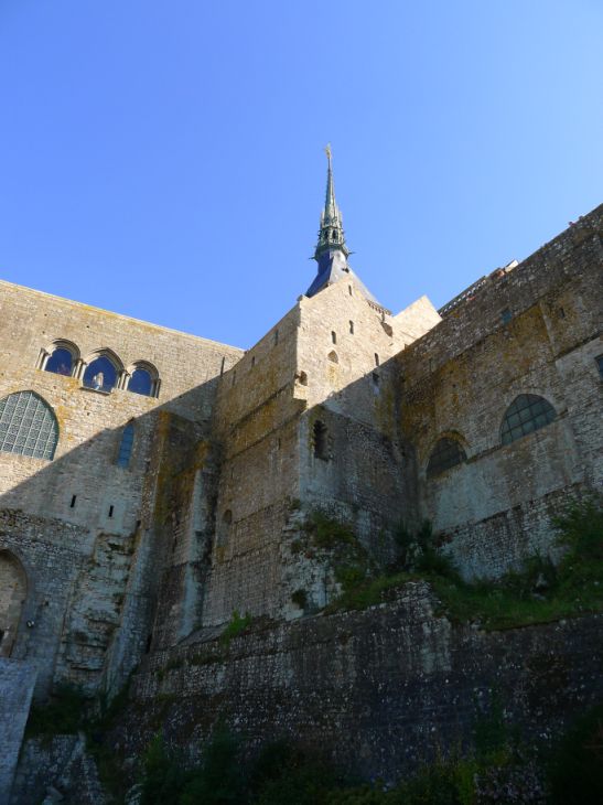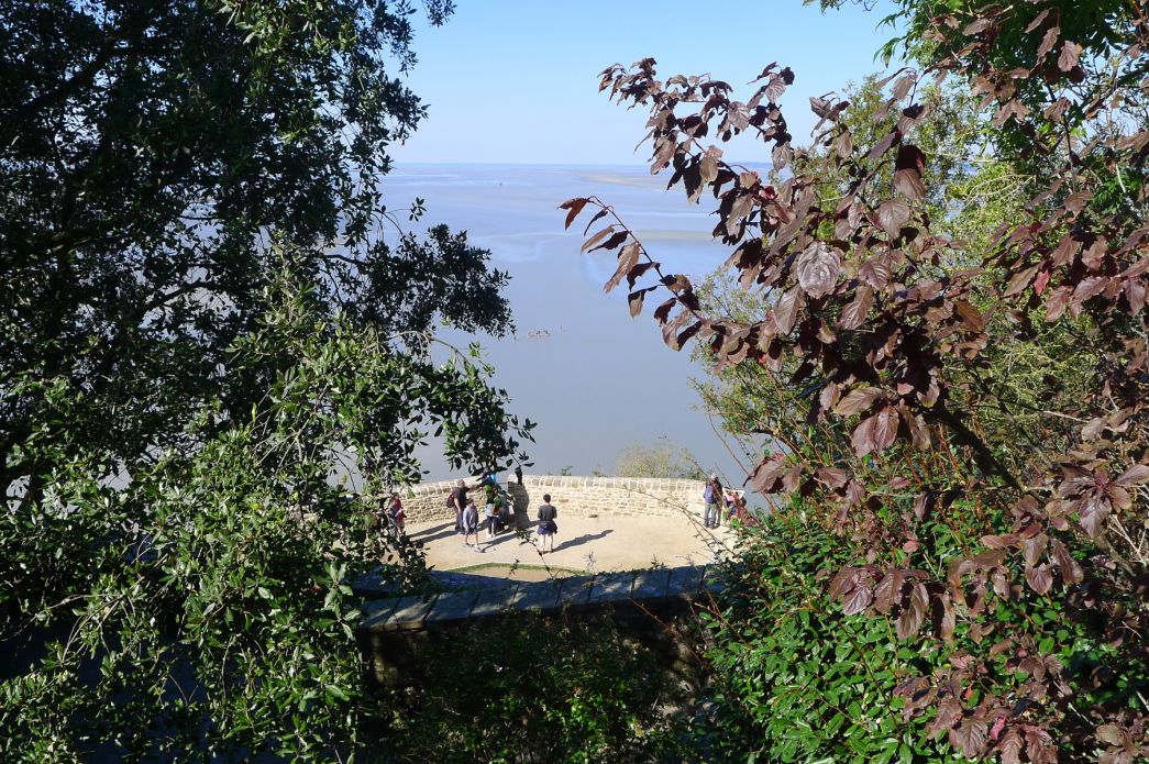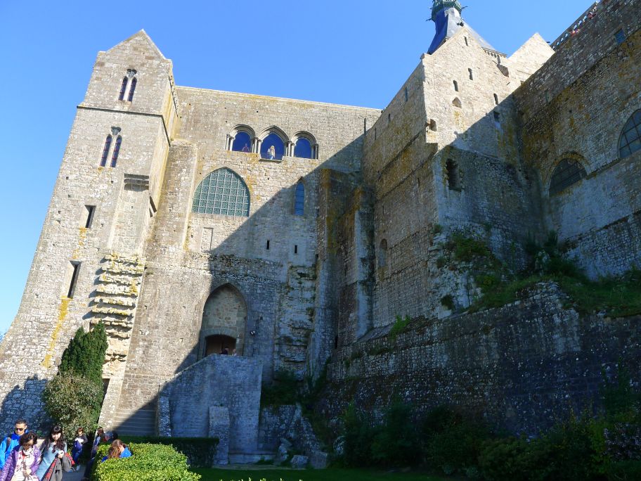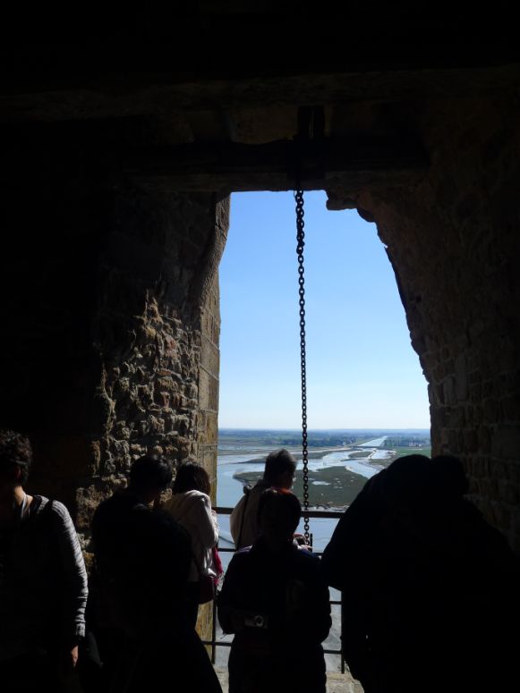 It rises out of a wide sandy bay with one of highest tide in Europe. The