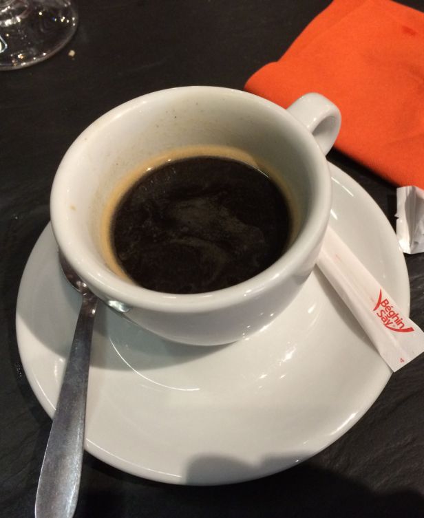 Finishing my lunch with a nice cup of coffee.-€3 By the way, if you are in France and you order a coffee what you will get is an espresso so if you want a coffee like we usually drink in the States, ask for a "Café Allongé": Espresso diluted with 2 shots of water- perfect for me. |