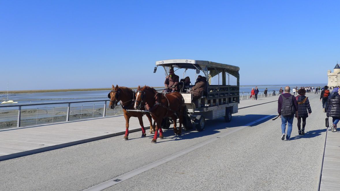 To get to Mont Saint Michel you have to park your car in a designated area and then take a bus that will drop you off close to the entrance. You have to pay for parking but the bus is free.