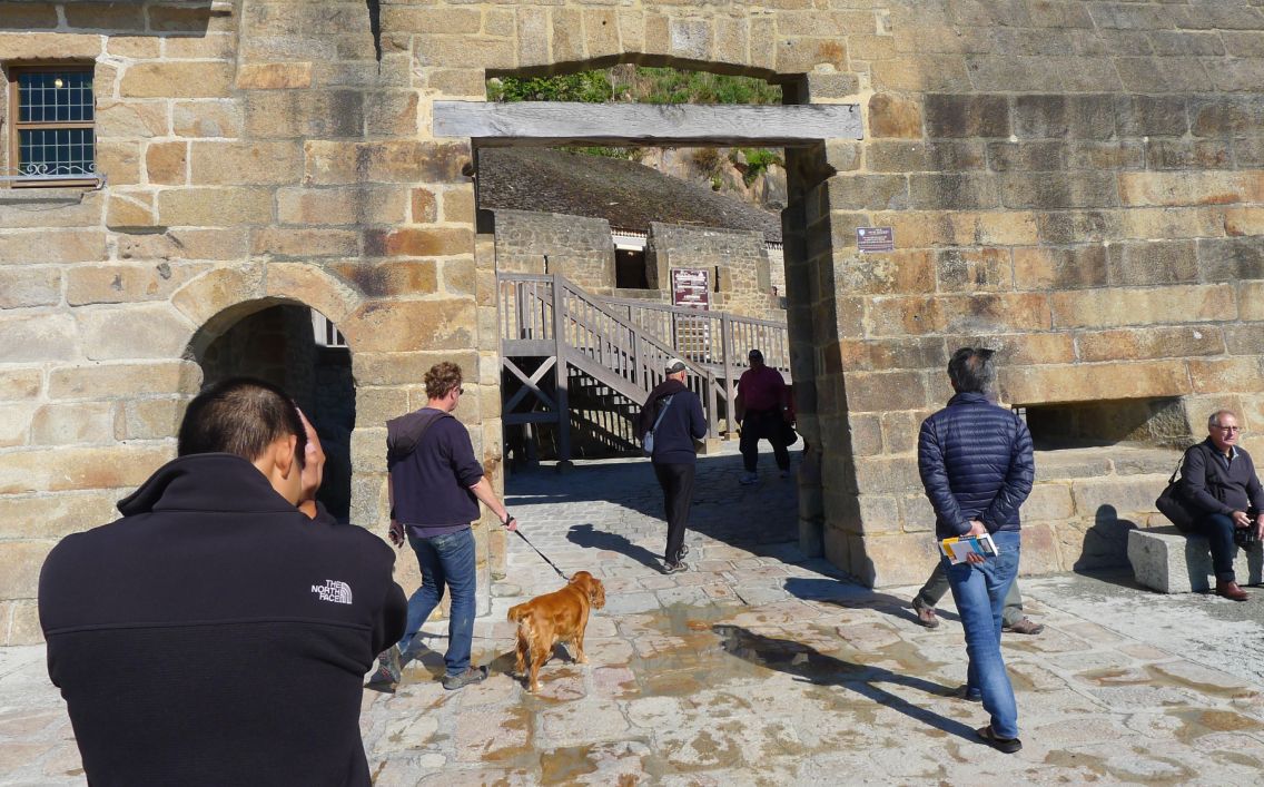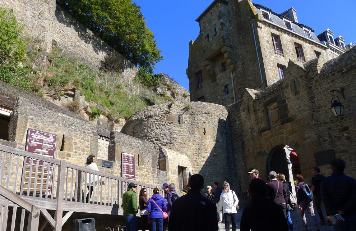 Tourists enter the island of Mont Saint-Michel at the old Burgher's Guardroom, which now houses the Tourist Office and this is also where all the restrooms are located.