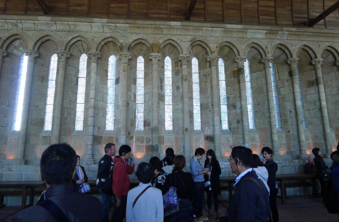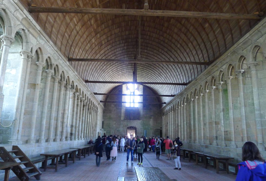 The refectory is where the monks ate their meals in silence. To provide light to this large room, the side walls are pierced with narrow windows invisible from the entrance.