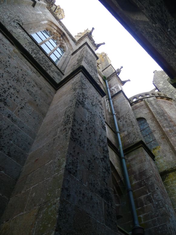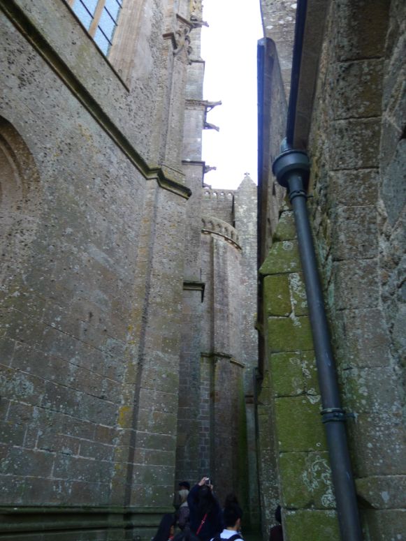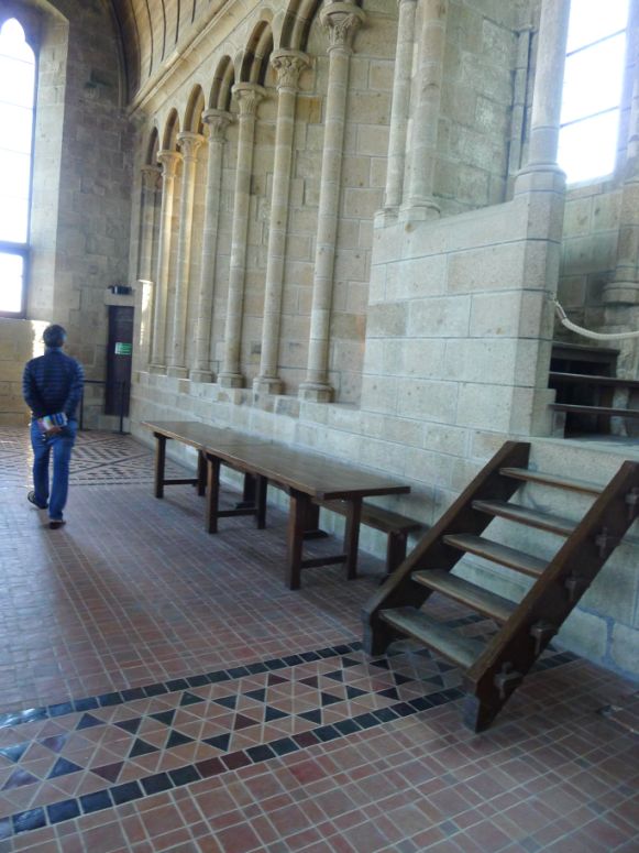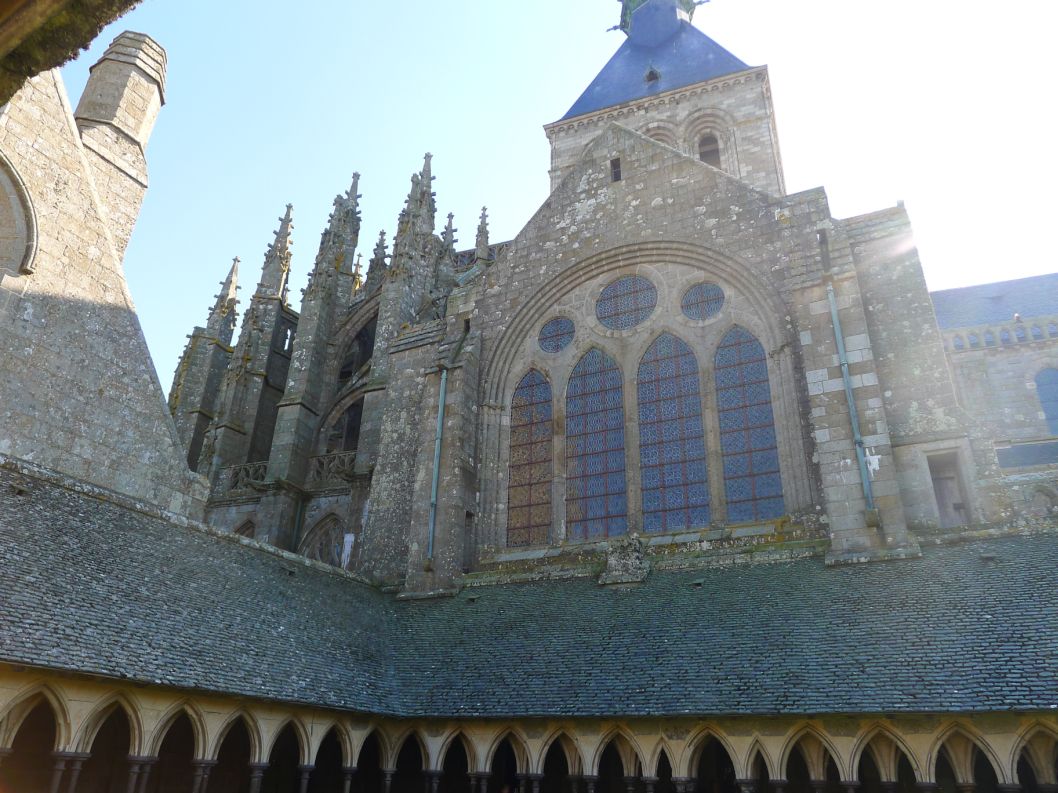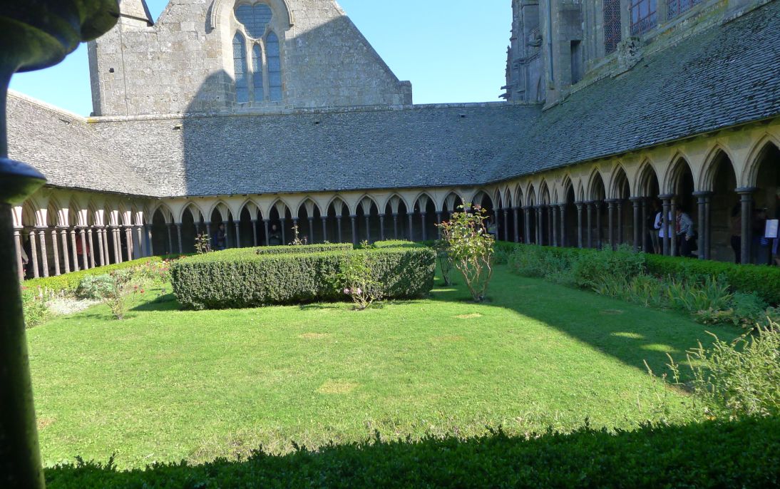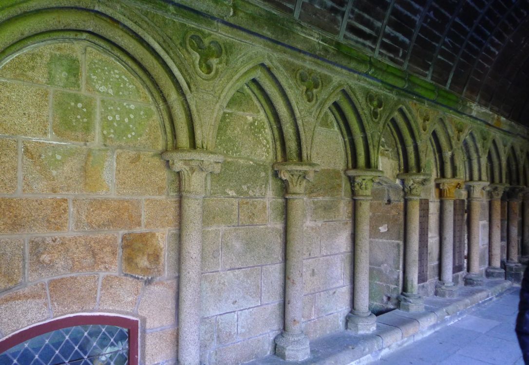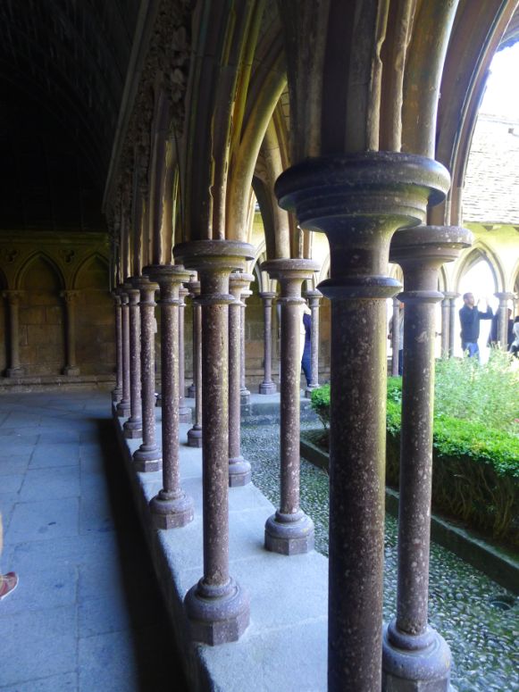 At Mont St. Michel the cloister was constructed of the third storey of La Merveille, over the vaults of the Salle des Chevaliers (we will see later).