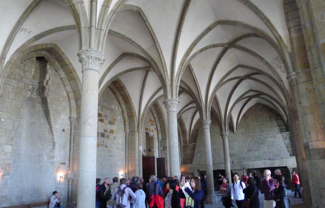 The Crypt was erected beginning in 1446 to support the Abbey church's gothic choir. In the center, ten massive cylindrical piers arranged in a semi circle support the pillars of the choir.