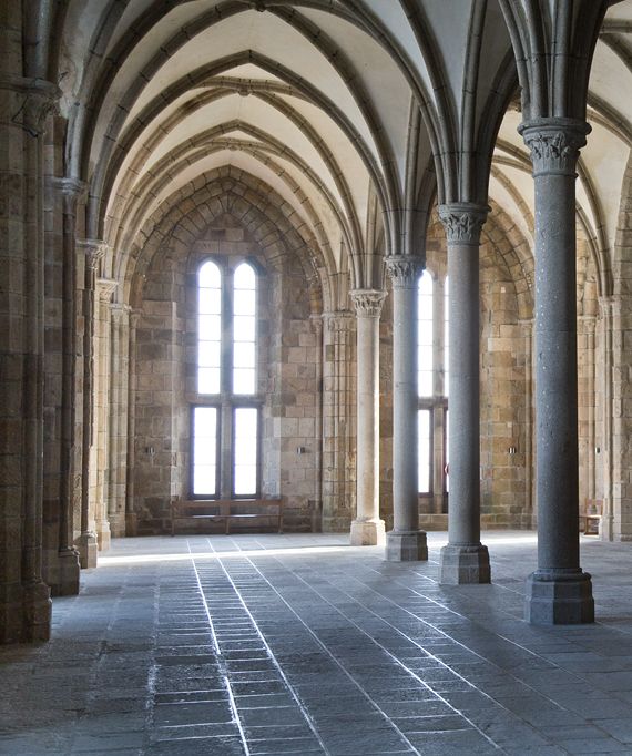 The cloister is a place of prayer and meditation where a monk may walk or sit by himself to read an mull over the word of God. Providing a link, between heaven and earth. The cloister has been referred to as the “Merveille” (the marvel) serves this purpose to perfection. It is also the center around which the principal buildings of an abbey are organized. It stand on the same level as the church, where the monks pray seven times a day, and it is connected to all of the monastery's major halls.