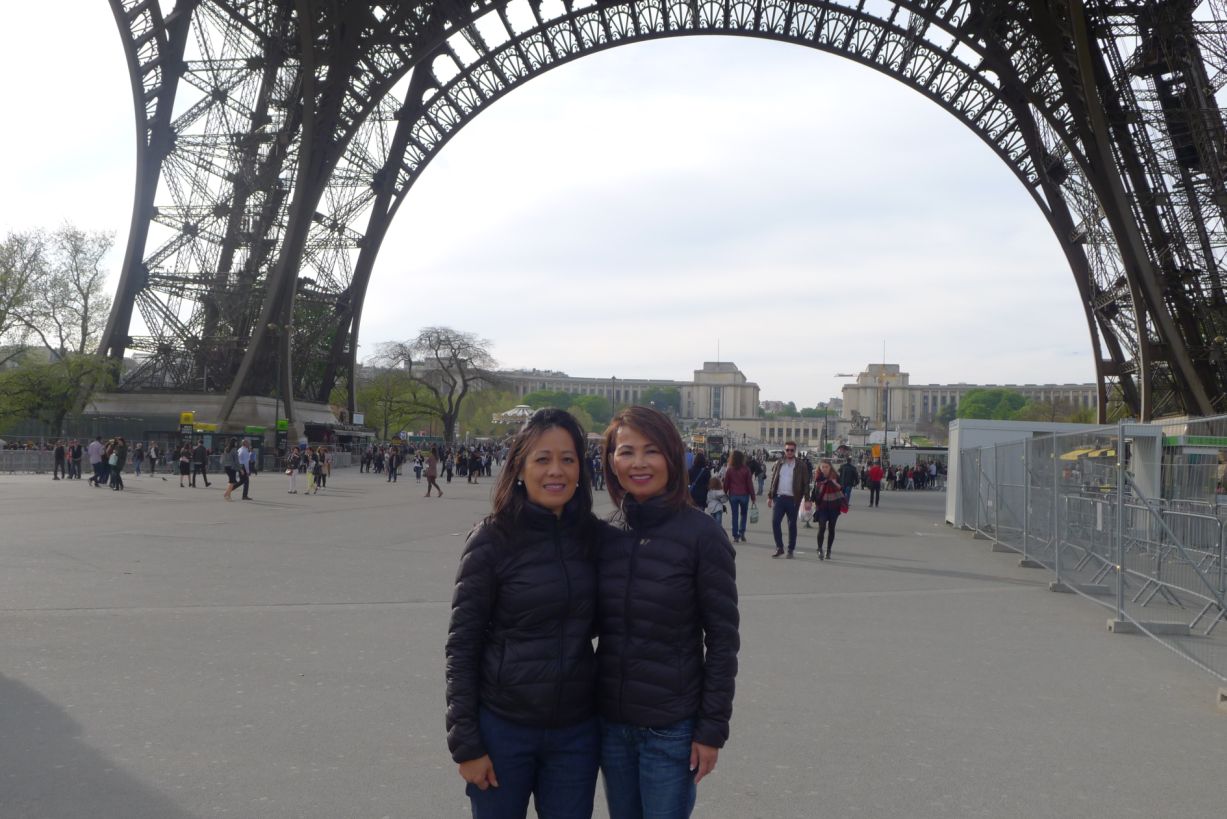 Loan and I at les champs de Mars with the Eiffel tower in the back ground.