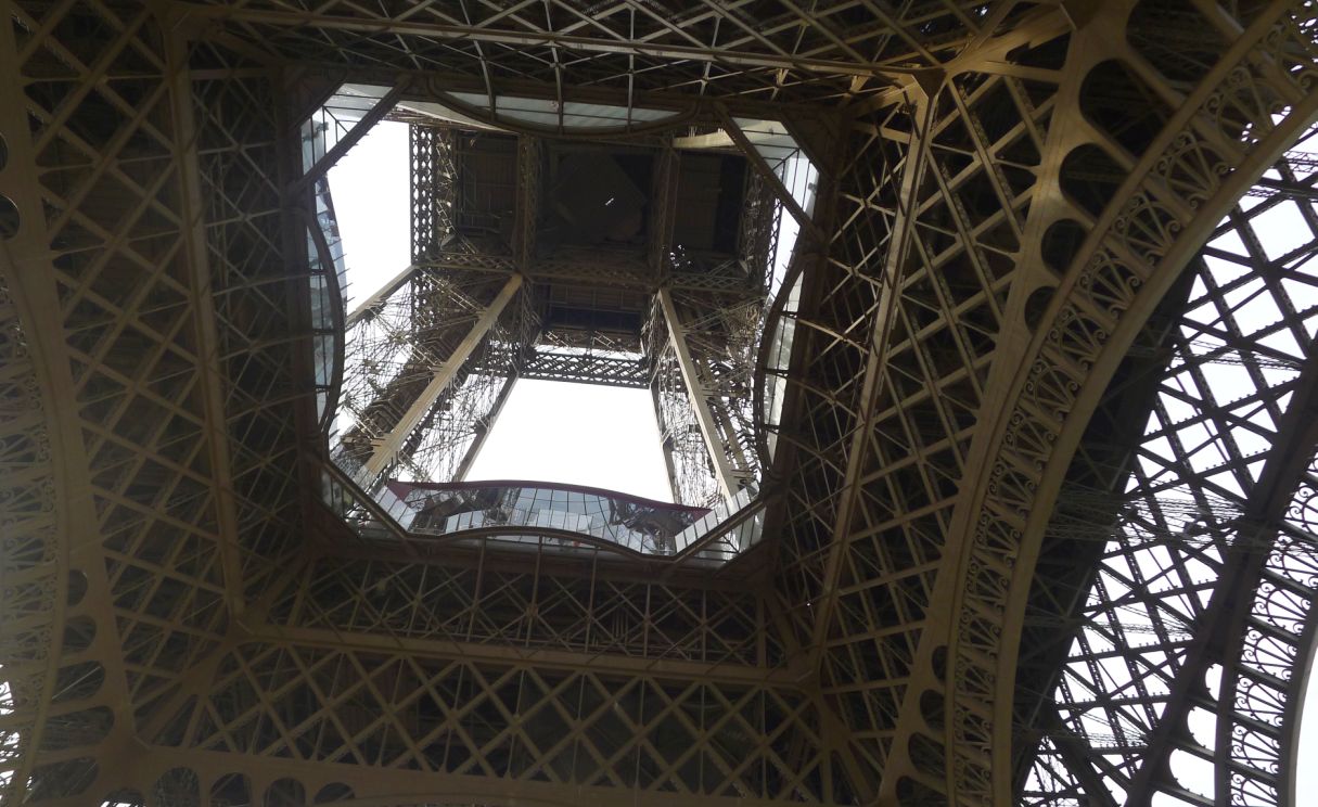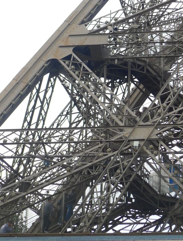 Look carefully and you will see people walking up the stairs to go to top of the Eiffel tower.