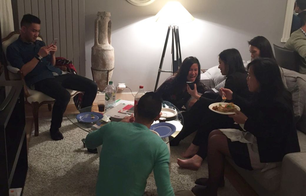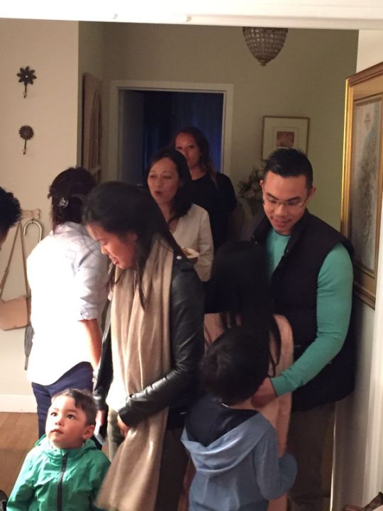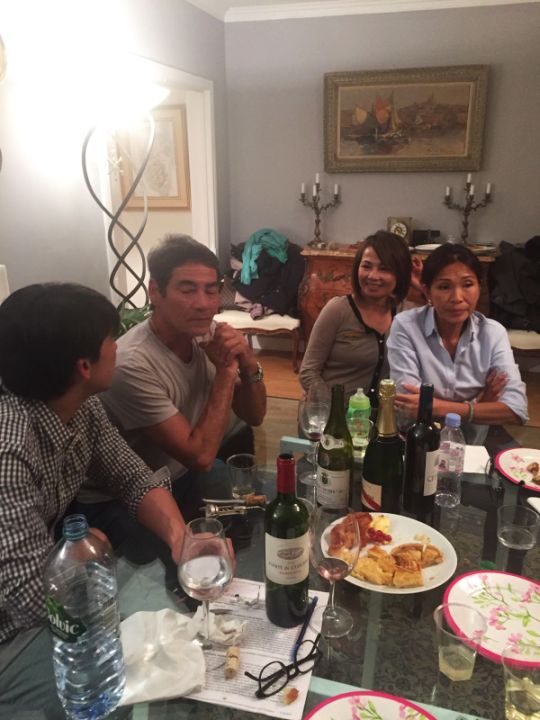 Phung and Melanie arrived a bit later so we gathered around to give them the welcome kiss "bisou".