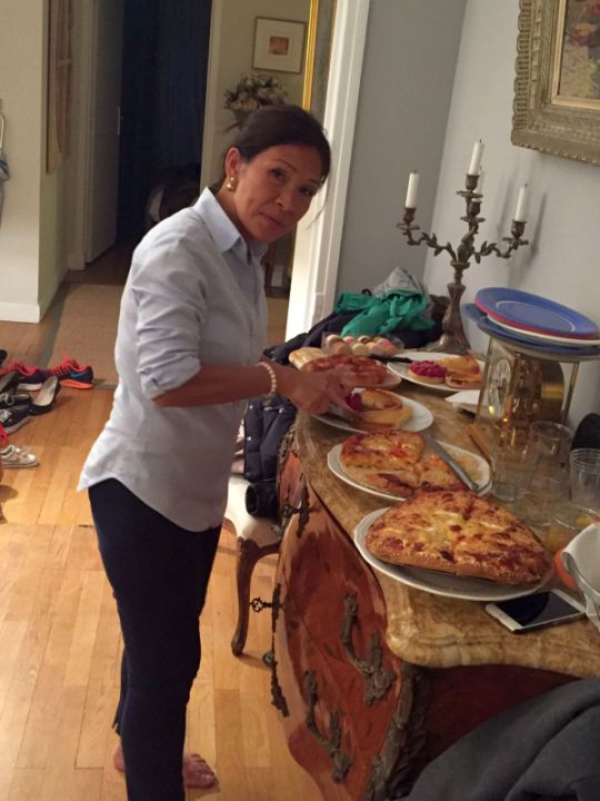Setting up dinner-buffet style. Since I cannot really cook here, we went out to get rotisserie chicken, pizza, salad, and pastries