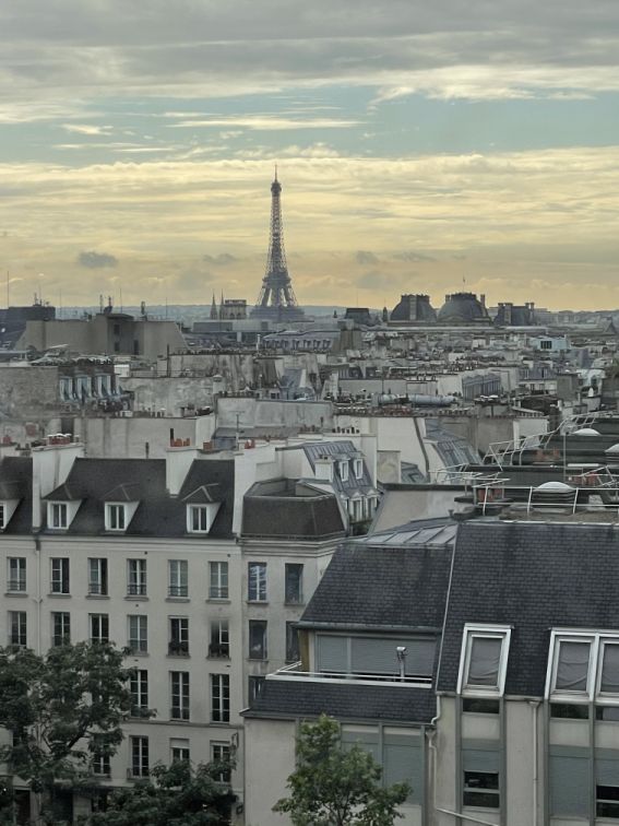 Eiffel tower in the distance.