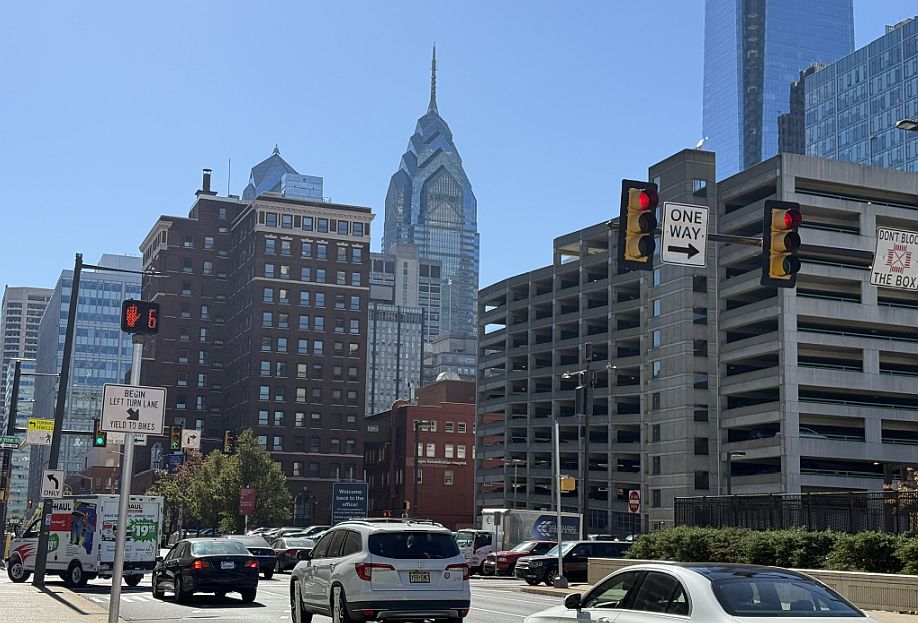 We are now in the City Center of Philadelphia. On the right is the Comcast Technology Center with the glowing top. It was completed in 2018. It is the Tallest building in Philadelphia (1,121 ft.)