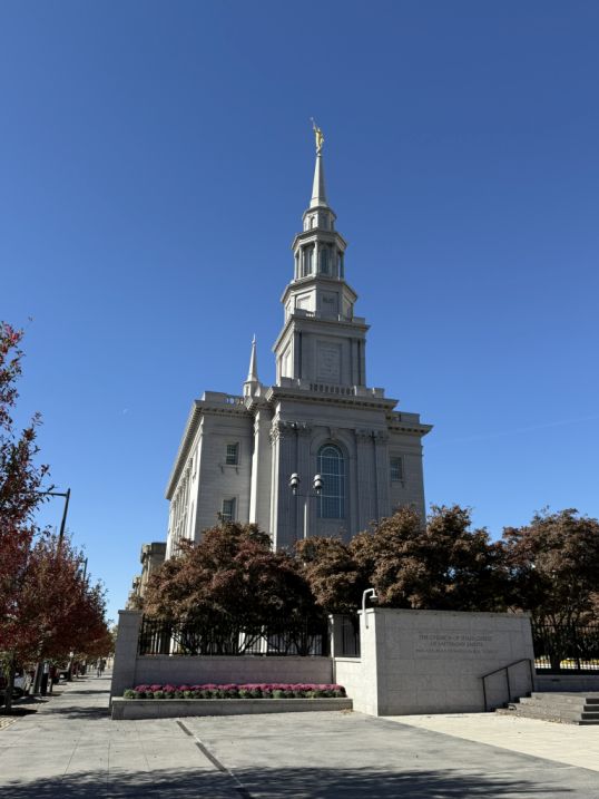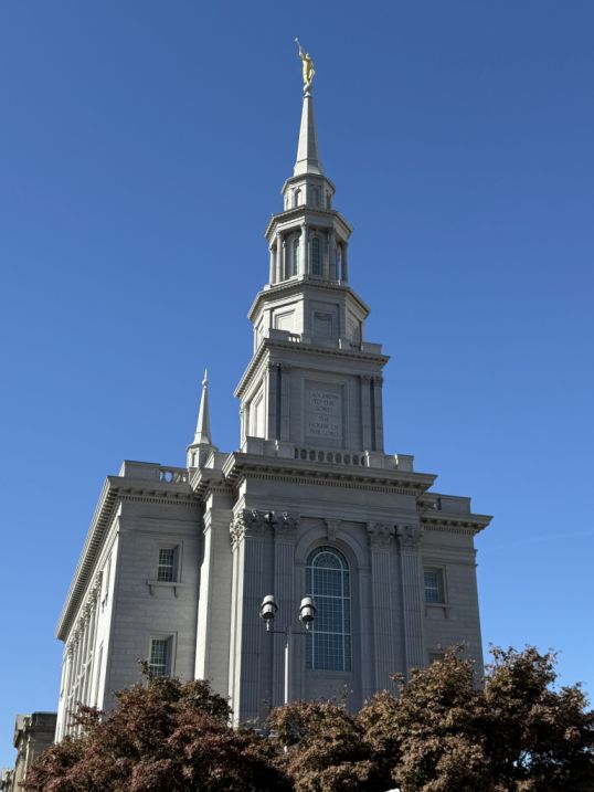 The Philadelphia Pennsylvania Temple is the first temple of The Church of Jesus Christ of Latter-day Saints in Pennsylvania, located at 1739 Vine Street, Philadelphia. The temple has two elegant spires, each rising into the sky. They echo the vertical emphasis of historic churches.