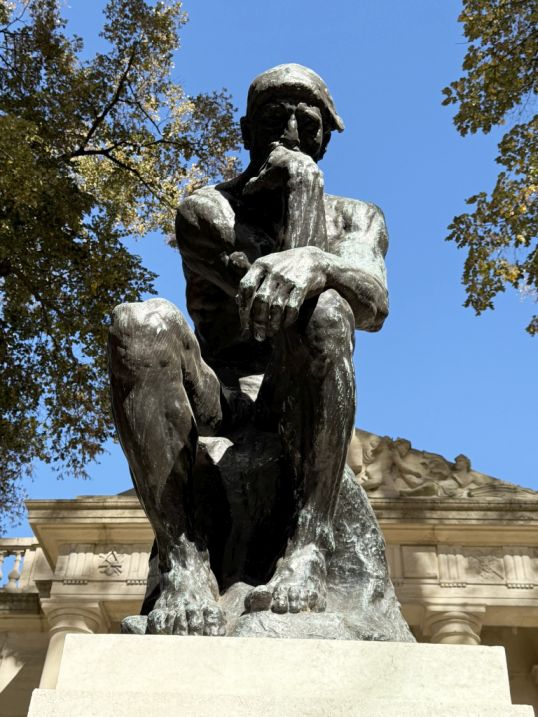 When you approach the Rodin Museum, the first sculpture you encounter is The Thinker, one of Rodin’s most famous works. It represent a powerful figure in a seated, contemplative pose, muscular and tense, not relaxed, he is thinking with his entire body, and symbolizes deep introspection, human struggle, and creativity.