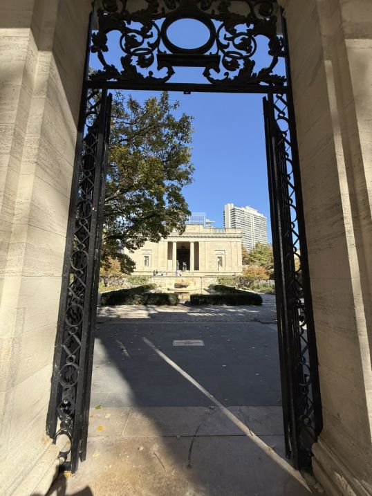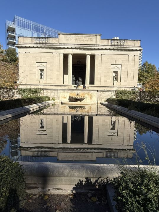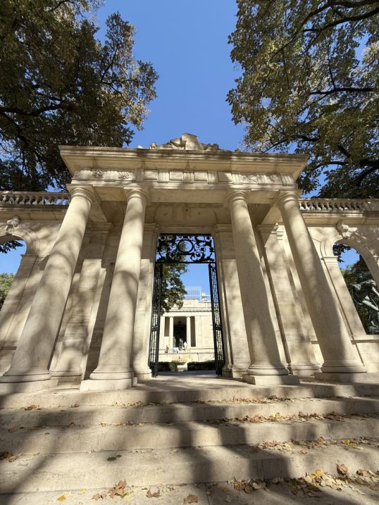 The gates are intense and dramatic, contrasting with the calm symmetry of the building and reflecting pool. The entire approach is theatrical: water → symmetry → classical façade → emotional, chaotic sculpture. It’s meant to move you from tranquility into contemplation.