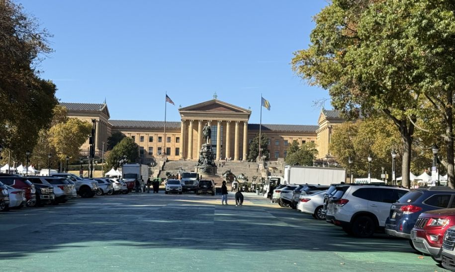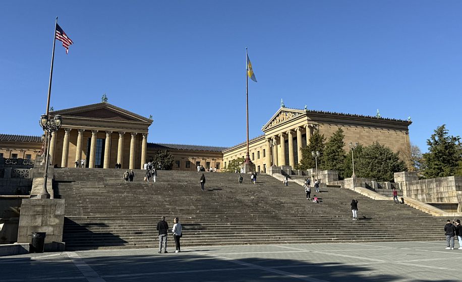 We are walking on the grand axis of the Benjamin Franklin Parkway leading straight to the Philadelphia Museum of Art.